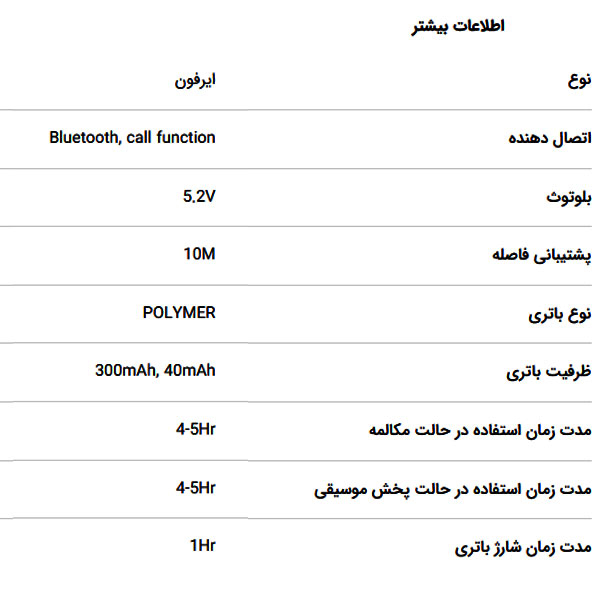 عمر باتری هدفون در حالت مکالمه :5 ساعت